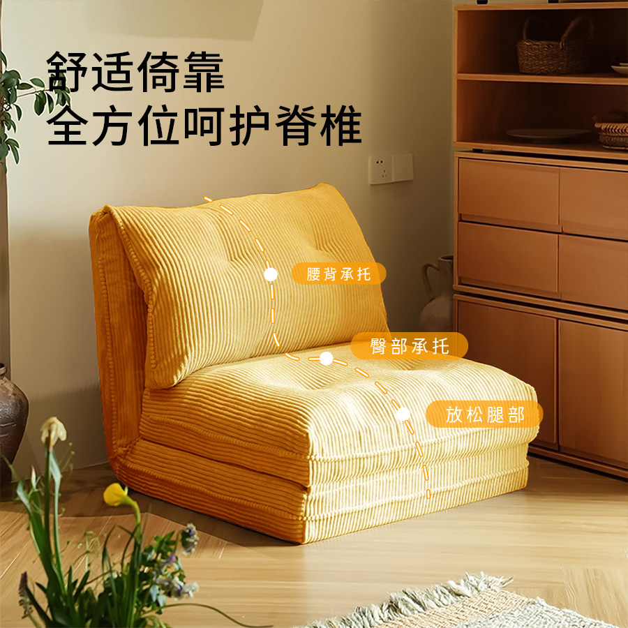 懒人沙发床单人可躺可睡可折叠榻榻米小户型奶油复古风面包椅