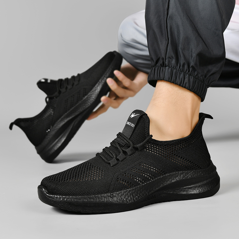 双星男士休闲鞋2025新款飞织网面透气黑色跑步鞋秋季男鞋运动鞋子