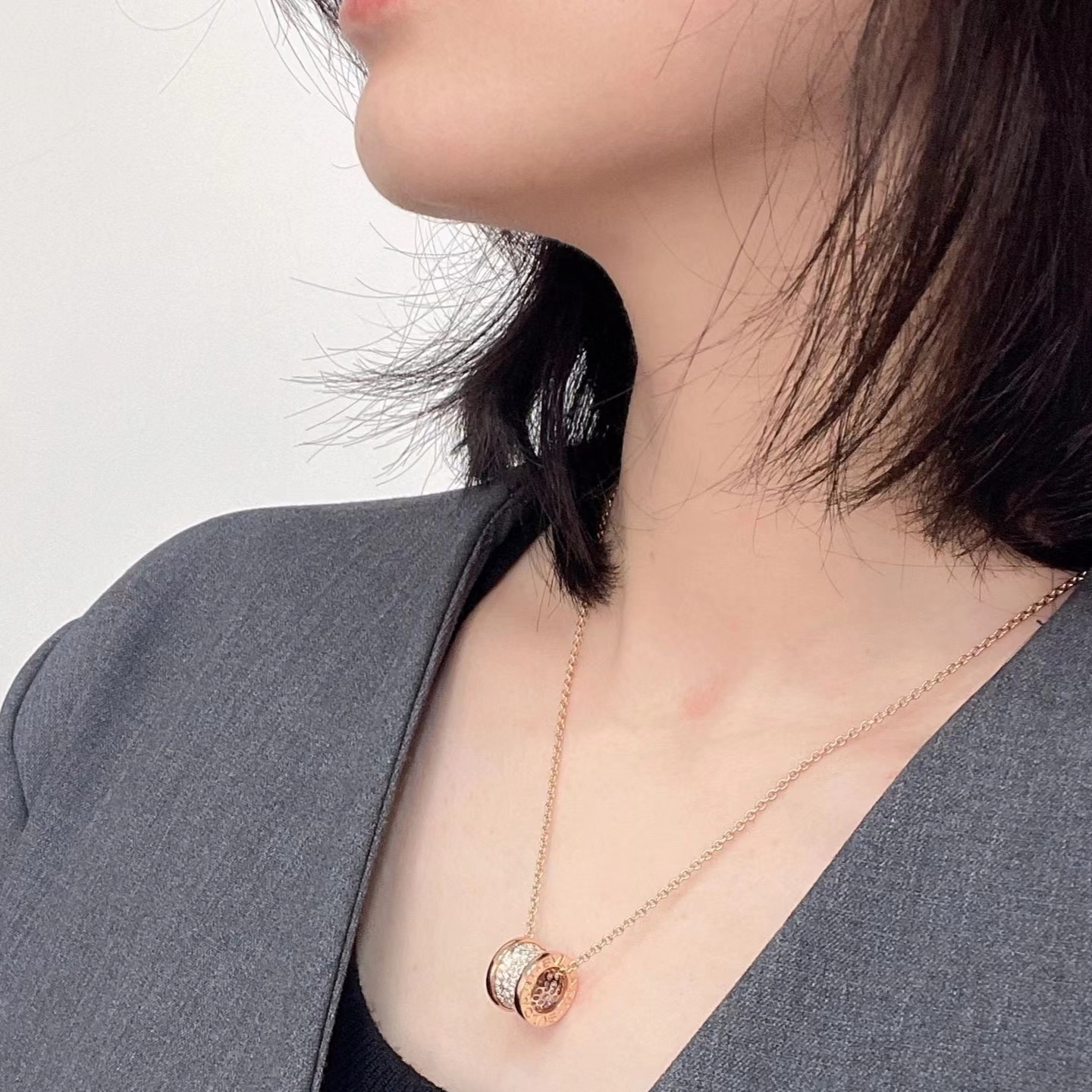 【公价10万+】99新宝格丽玫瑰金满钻满天星大蛮腰项链348035正品