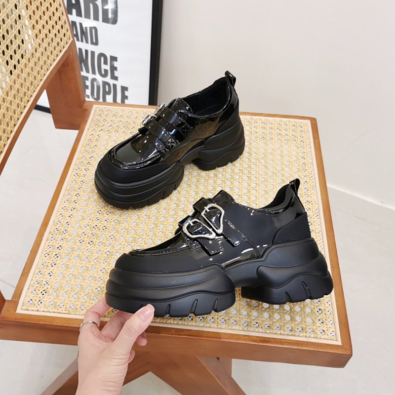 日系甜美小个子厚底增高乐福鞋2025春秋新款两面小皮鞋一脚蹬懒人