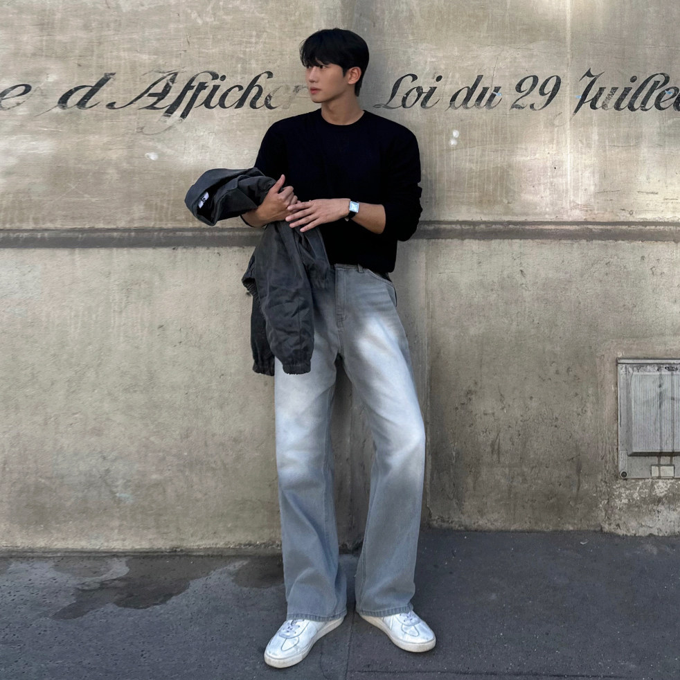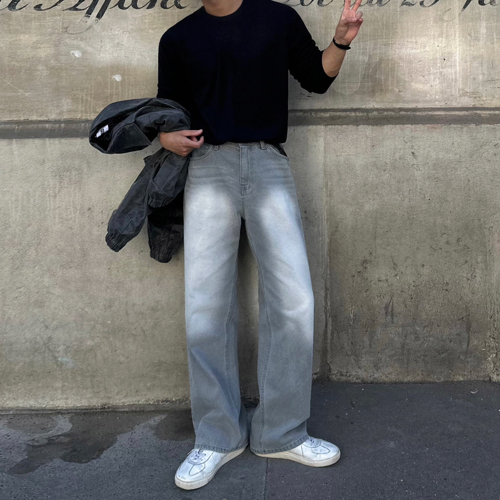 MRCYC烟灰水洗直筒牛仔裤男春季cleanfit长裤韩系潮流痞帅拖地裤