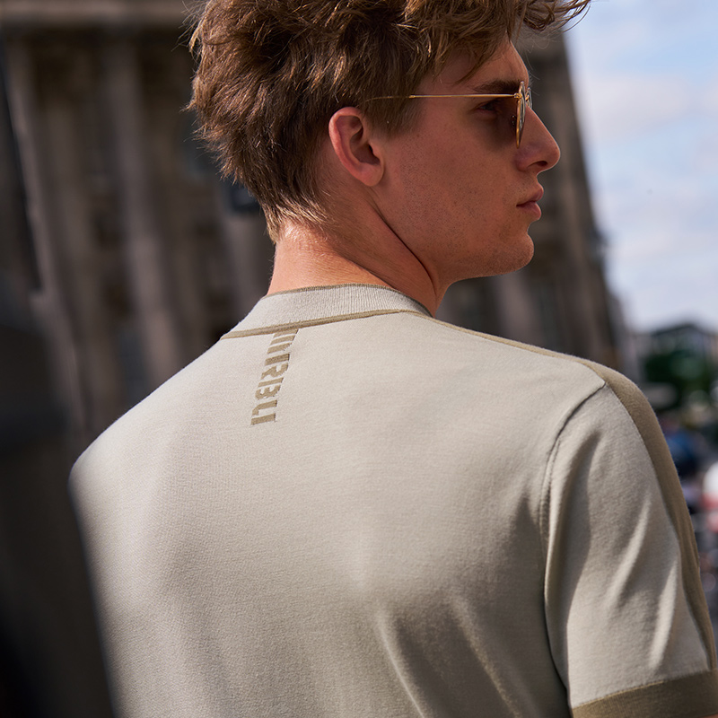 MrBu布先生小高领贴身亲肤短袖羊毛衫2025秋新款撞色毛t男PT16711