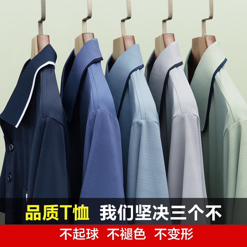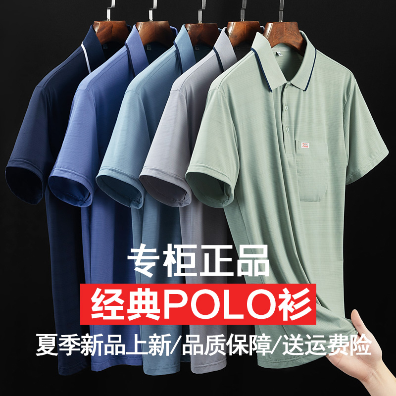 2025年新款夏装翻领冰丝t恤男士速干体恤中年爸爸夏季短袖polo衫