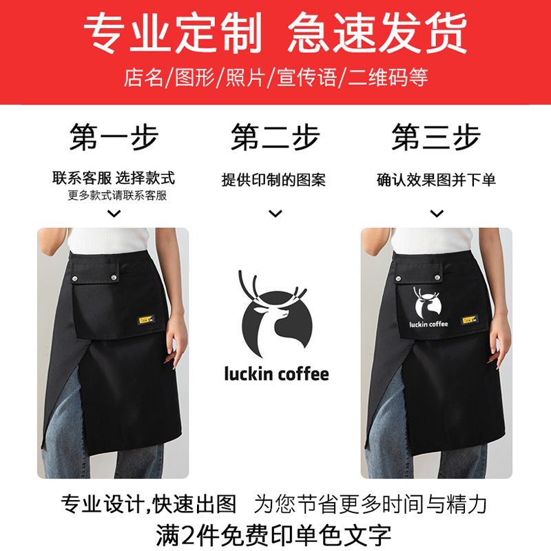 半身围裙厨房防水防油厨师餐饮店服务员手机兜工作服定制印字logo