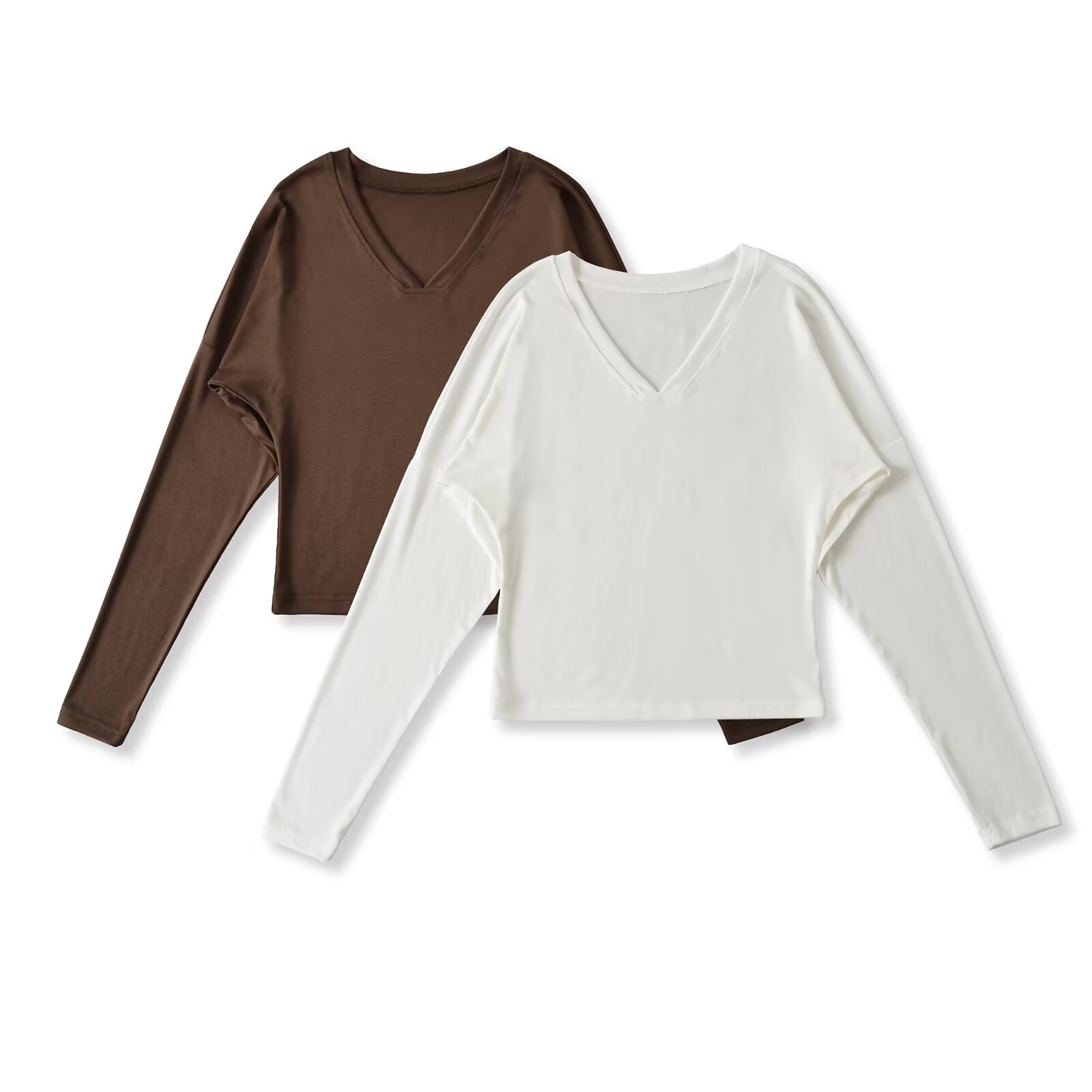 MICN松弛慵懒风V领天丝蝙蝠袖上衣女百搭修身显瘦长袖t恤打底衫