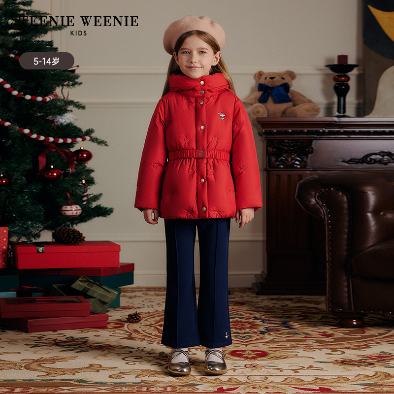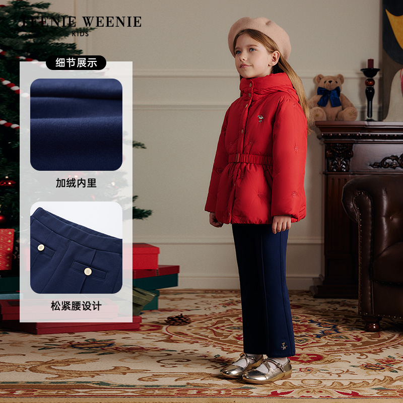 TeenieWeenie Kids小熊童装25年款女童时尚风纯色加绒微喇叭长裤