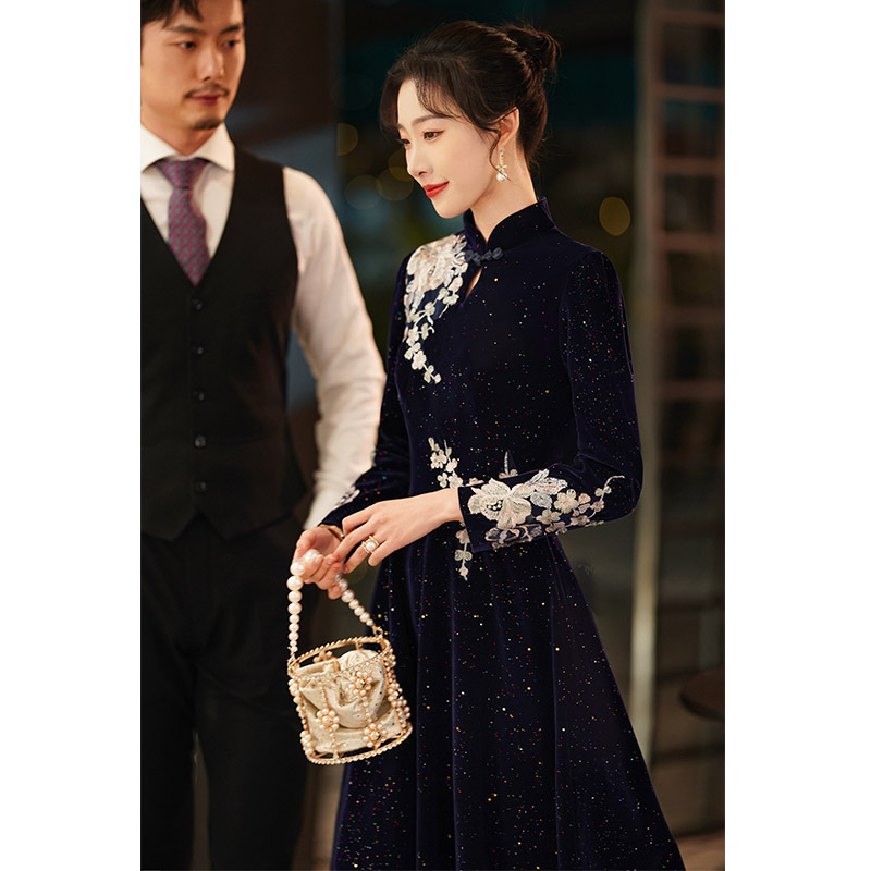 中式夏季演出服2025新款主持人晚礼服裙女宴会气质长款高级感旗袍