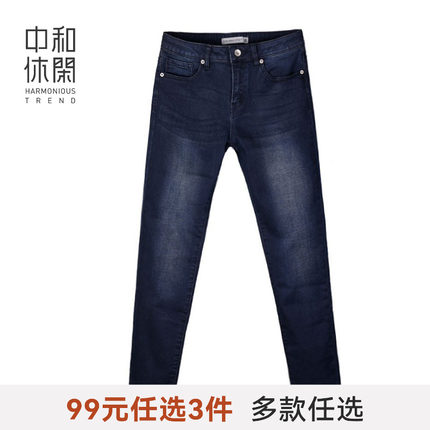 中和休闲中和休闲合身锥形牛仔裤女裤冬季紧身小脚长裤保暖简约裤
