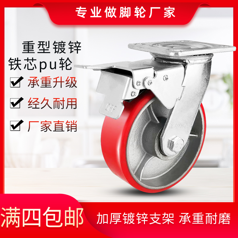 4寸5寸6寸8寸铁芯PU轮聚氨酯超重型万向轮脚轮工业轮载重500公斤