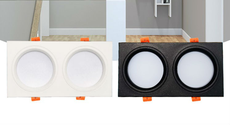 led双头筒灯吊顶格栅灯长方形射灯嵌入式天花灯斗胆灯双筒灯双排