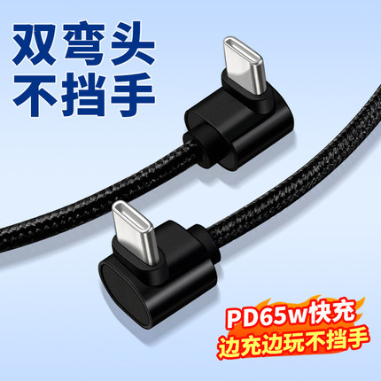 双弯头Type-C数据线L型拐头TYPC直角不挡手PD65W快充线适用iphone16苹果华为三星手机iPad平板电脑笔记本充电