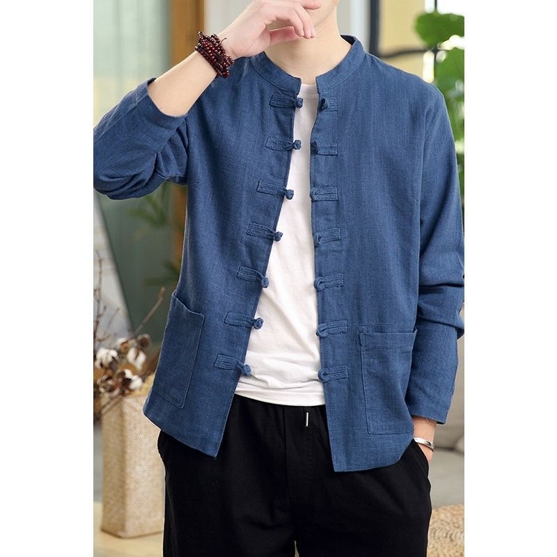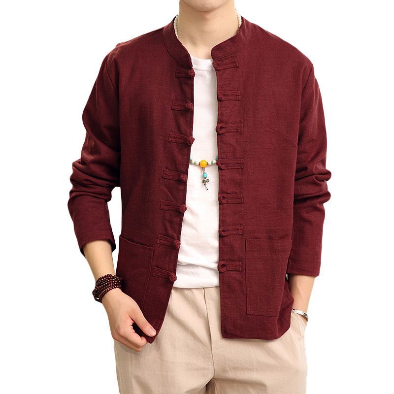 中国风春秋季新款汉服中山装棉麻外套男装古风中式盘扣唐装男夹克