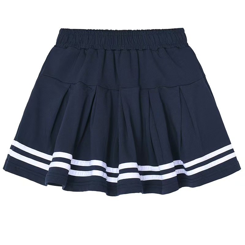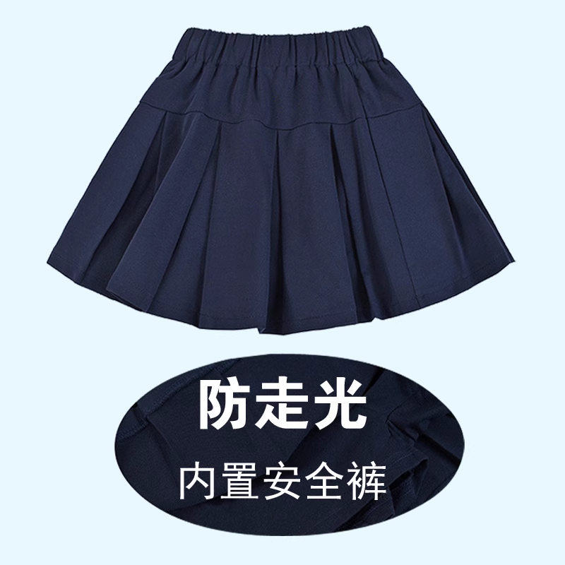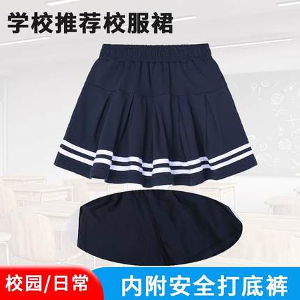 中小学生校服裙子藏青色百褶裙学院风双白条纹女童演出半身短裙裤
