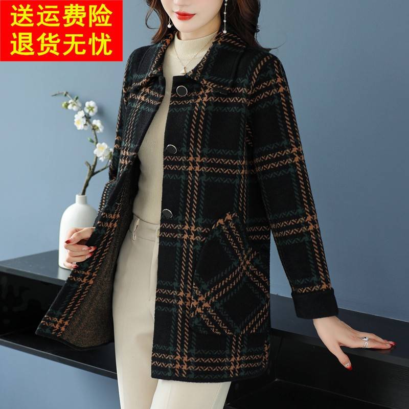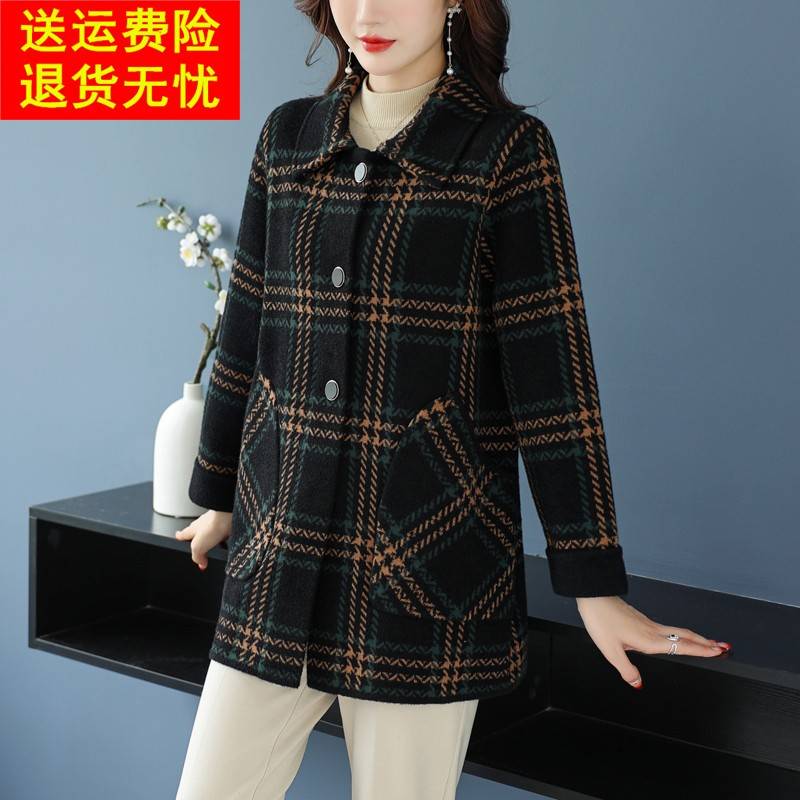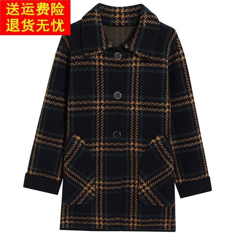 中老年妈妈秋冬针织羊毛呢子外套胖女人加大码中长款双面羊绒大衣