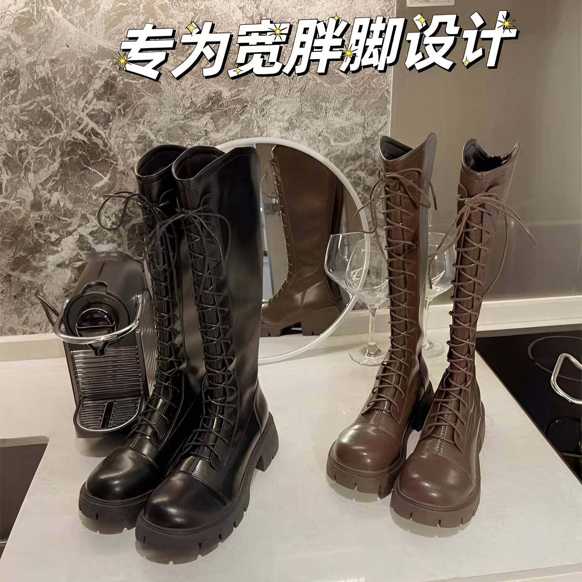 加宽大筒围靴子胖MM粗腿长筒靴v口厚底增高腿围骑士靴女大码41-43