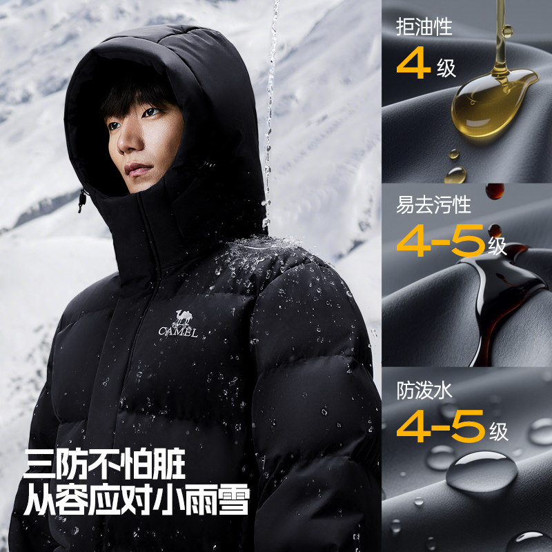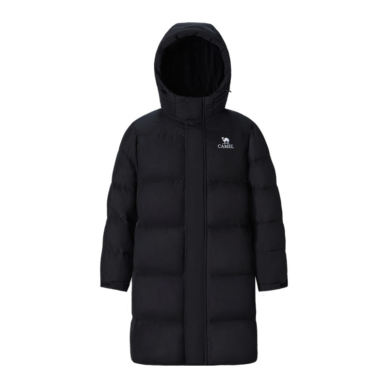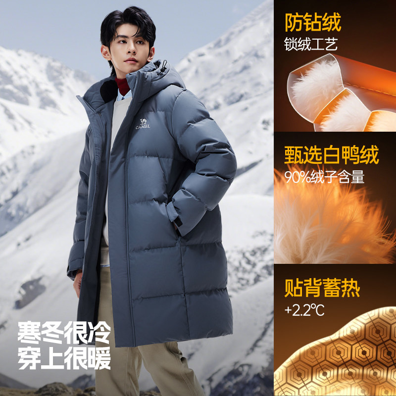 骆驼羽绒服男冬季2025新款三防户外极寒加厚连帽中长款黑色羽绒衣