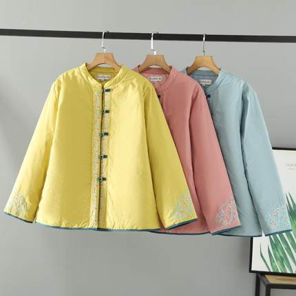 2025冬装新款女装胖mm国风棉袄女复古盘扣大码棉麻刺绣新中式棉服