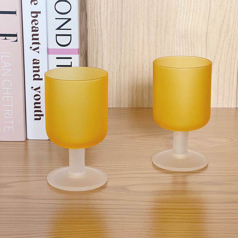 ins风中古杯落日杯暮光之橙橘色磨砂玻璃高脚杯矮脚红酒酒杯水杯