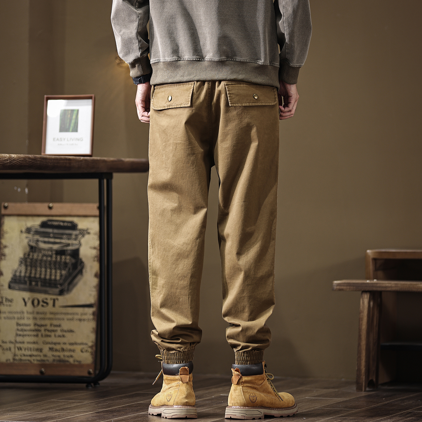美式复古束脚休闲裤男宽松大码