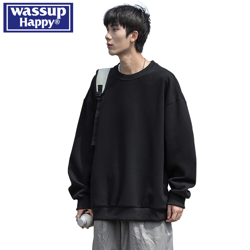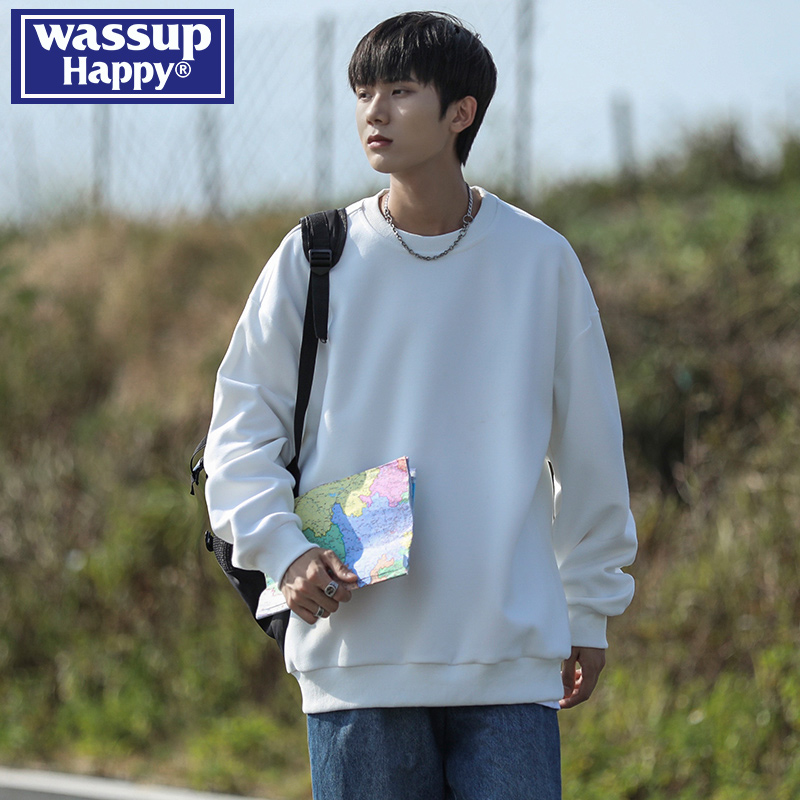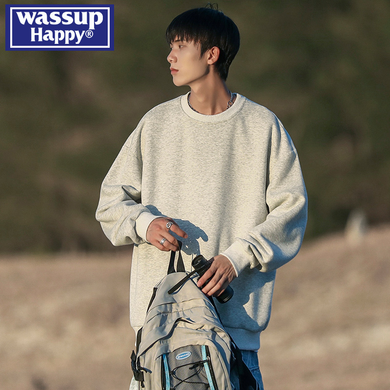 WASSUP HAPPY重磅圆领卫衣男士春秋季2025新款青少年宽松休闲外套