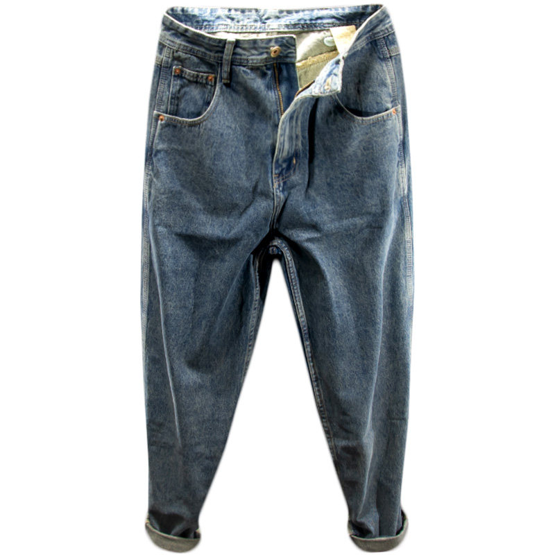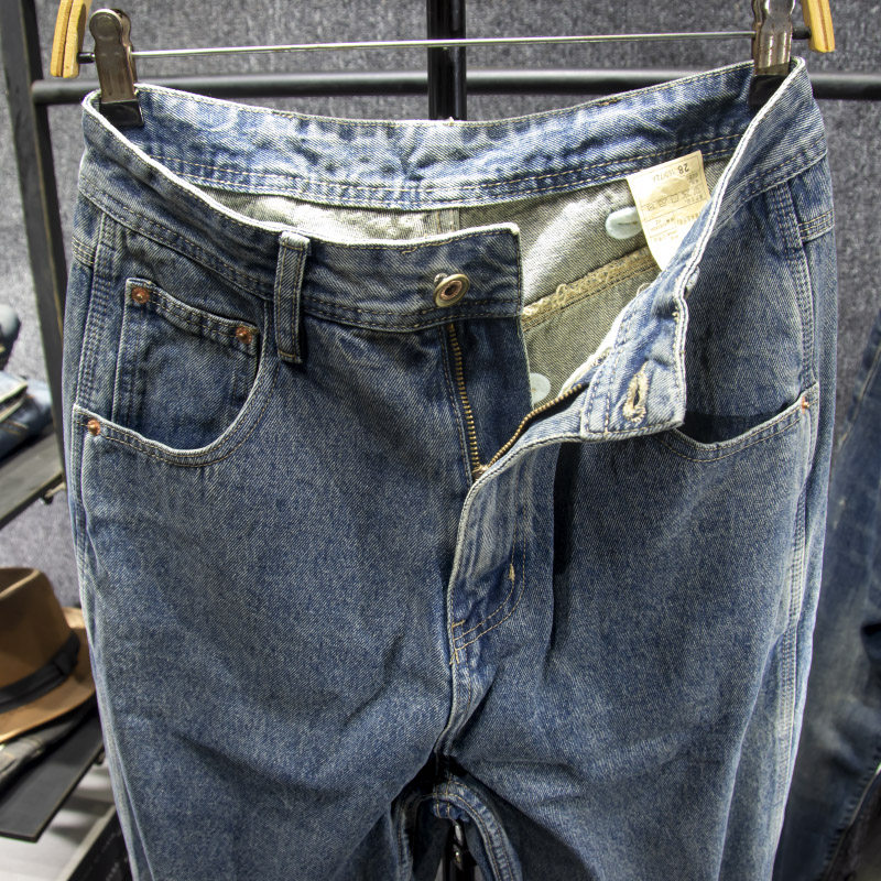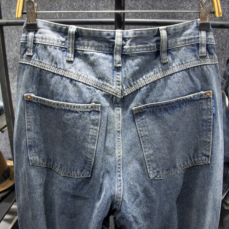 三古木棉美式高街长裤子男夏季复古牛仔裤男宽松直筒大码哈伦裤