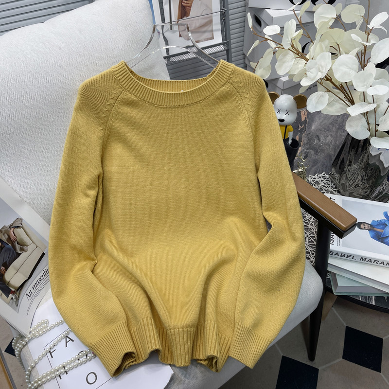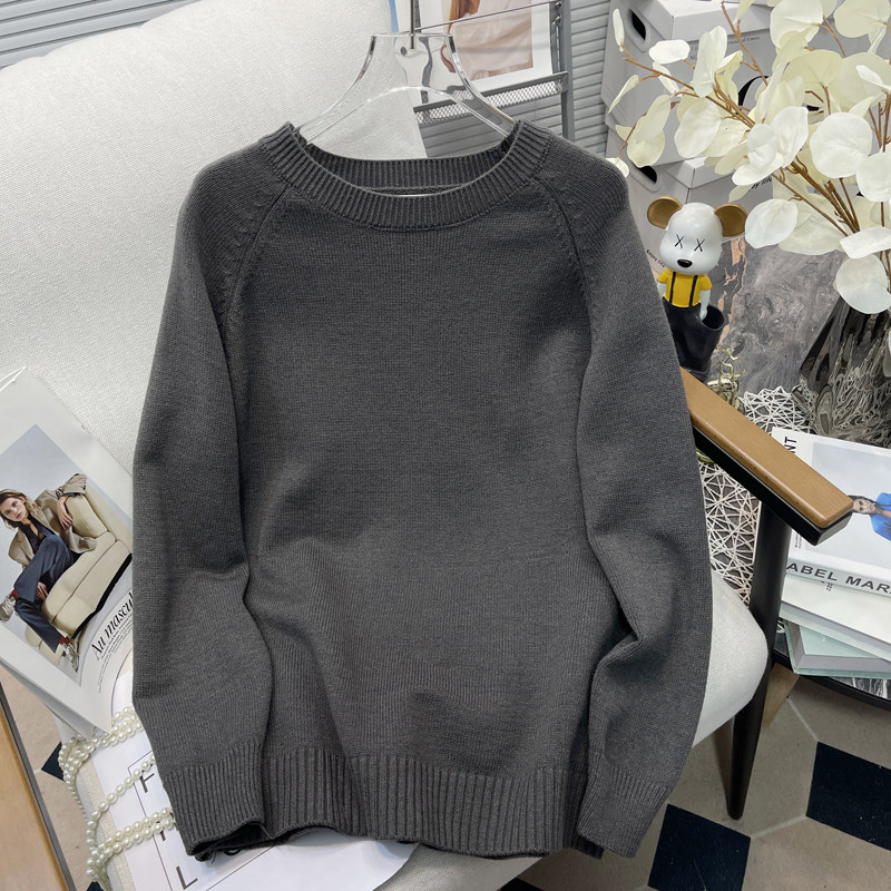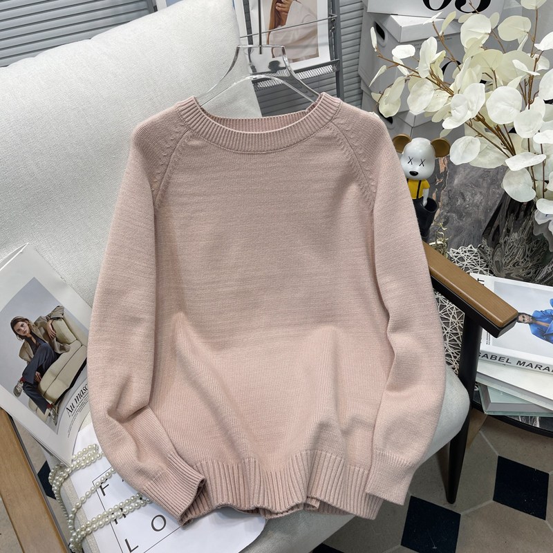 胡子叔大码女装圆领套头毛衣秋冬设计感简约洋气宽松慵懒风针织衫
