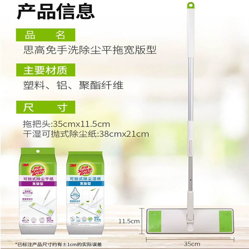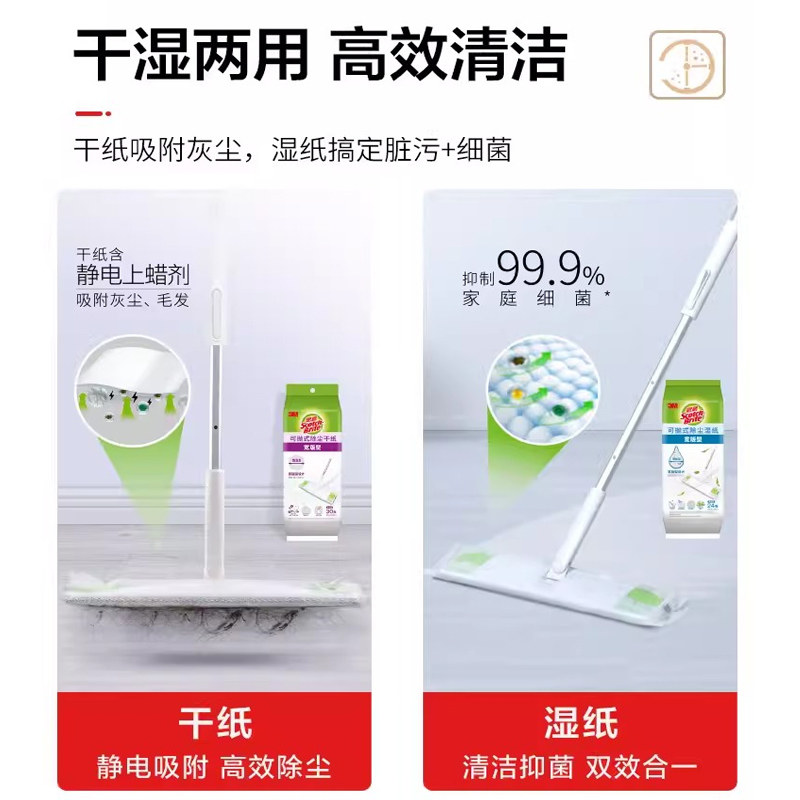 3M思高免手洗除尘平拖宽版型X6可抛式除尘干纸30片除污湿纸24片