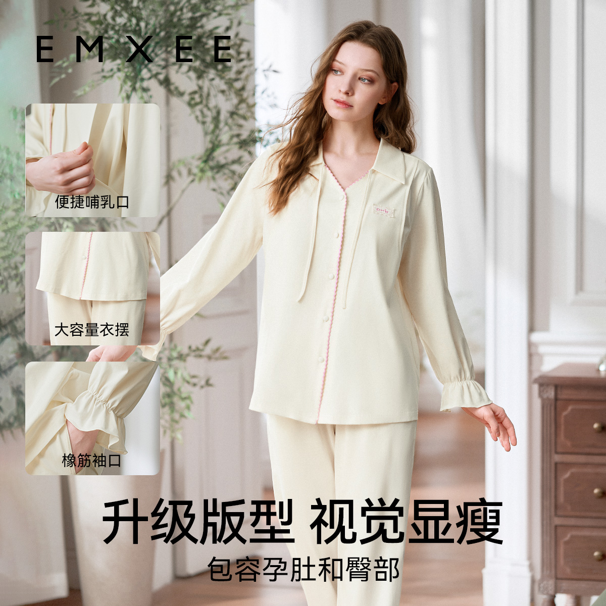 唐艺昕同款 嫚熙秋冬季吸汗月子服丝柔纯棉孕妇睡衣哺乳家居服