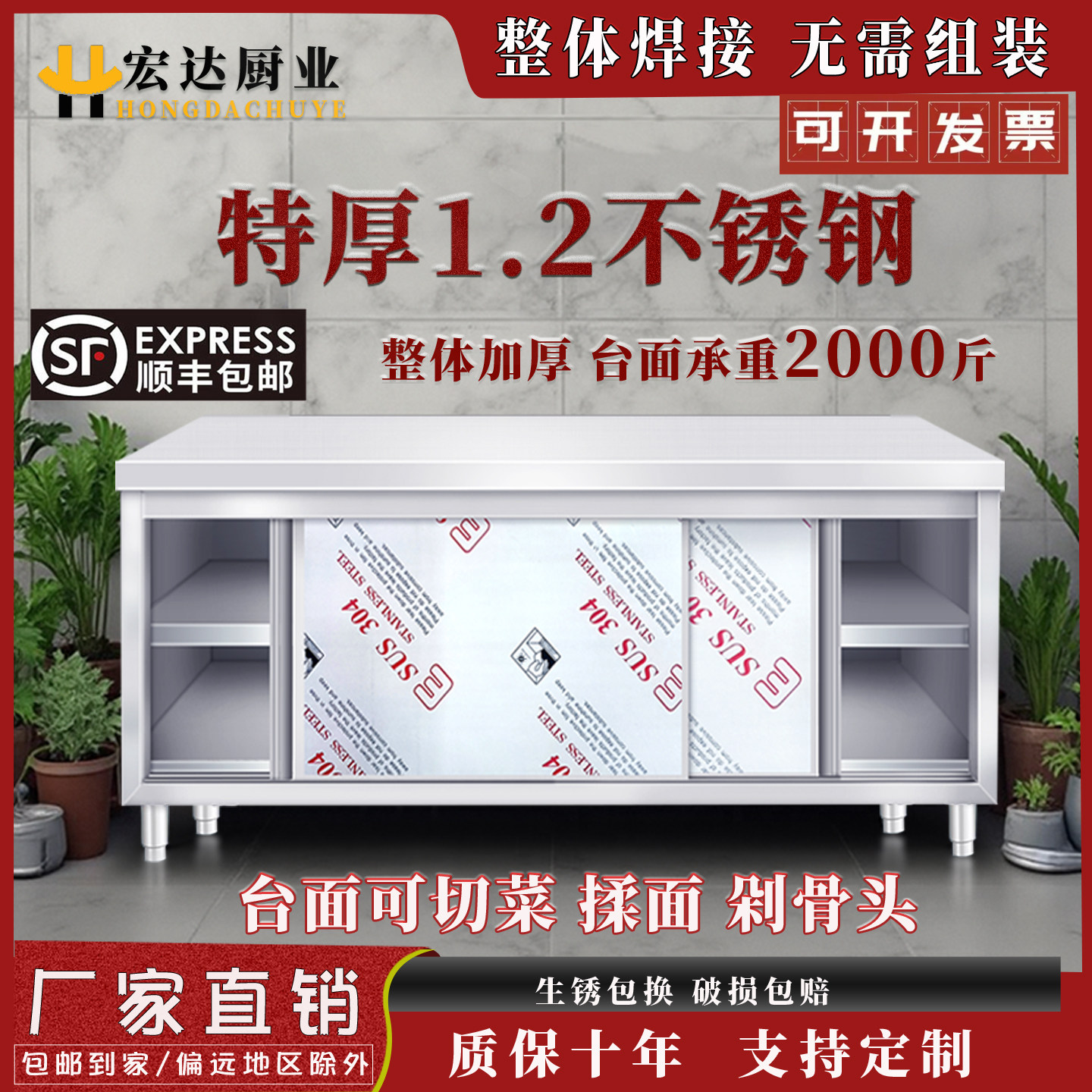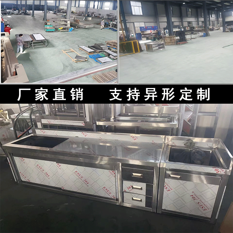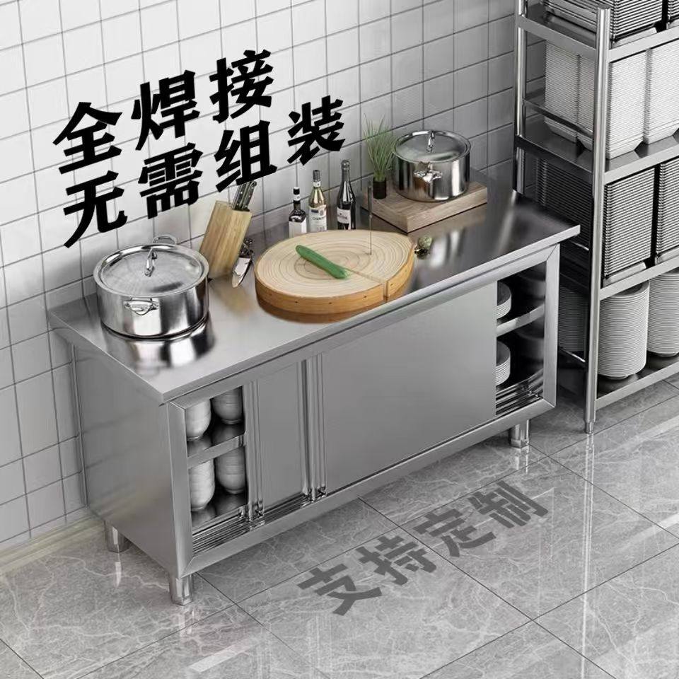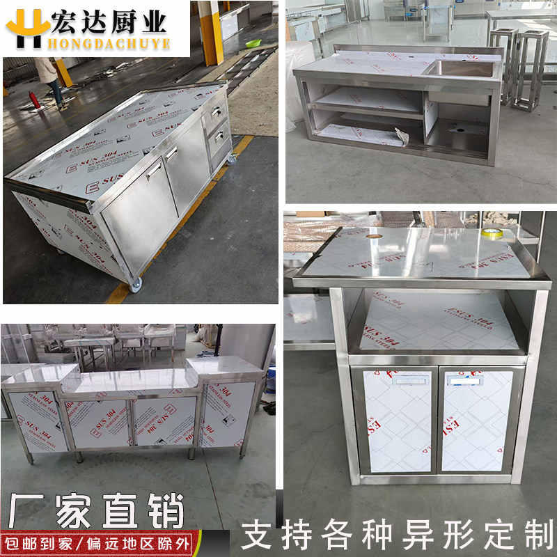 商用304不锈钢工作台厨房专用打荷台桌子长方形操作台定制橱柜