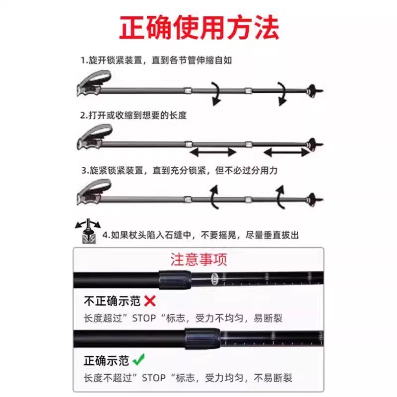 德国登山杖手杖超轻伸缩折叠专业户外徒步杆棍拐杖爬山装备男女款