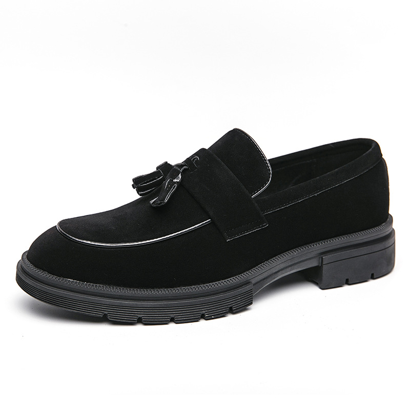 豆豆鞋男夏季透气懒人一脚蹬流苏韩版磨砂皮乐福鞋尖头小皮鞋