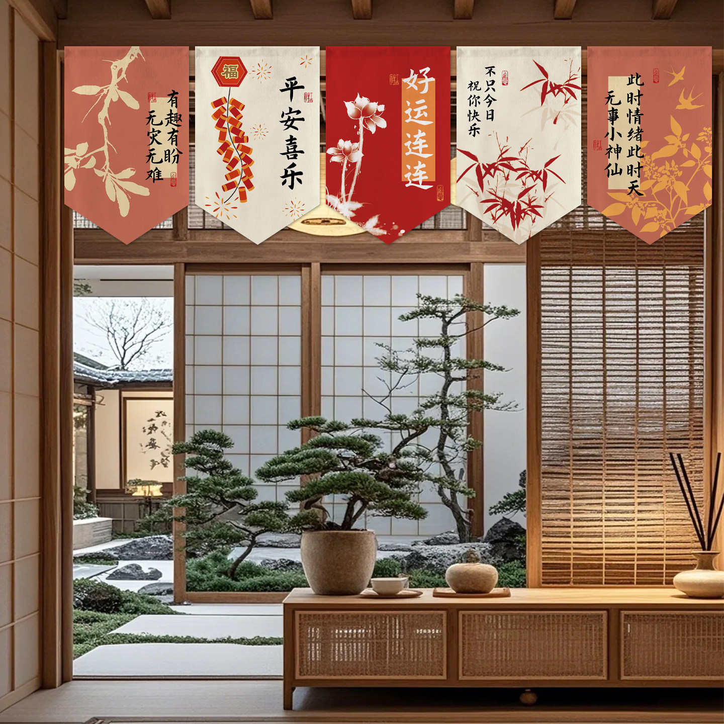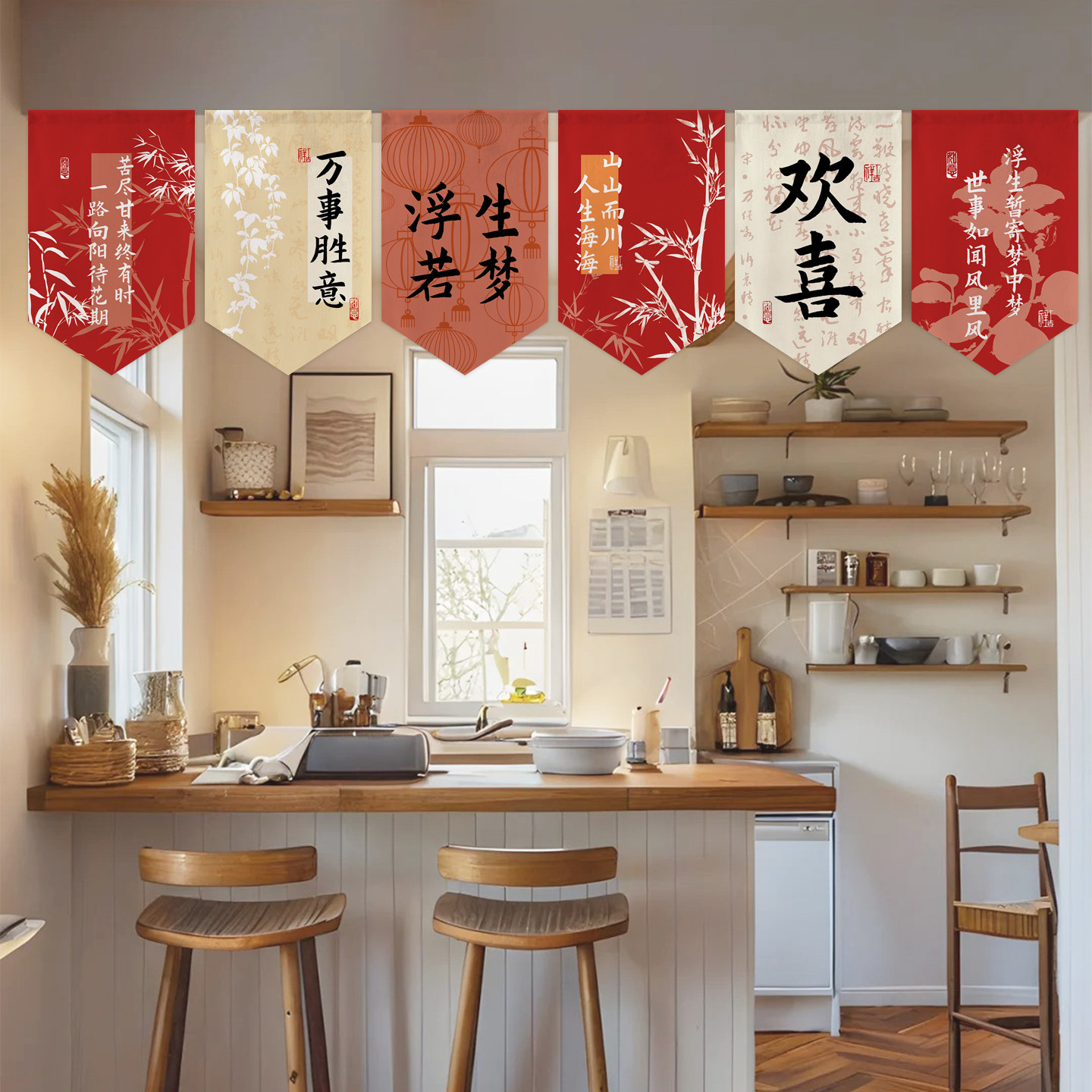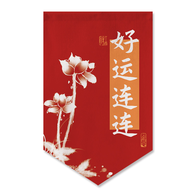 新中式喜庆三角旗帘店铺门头遮挡半帘窗户装饰挂旗厨房隔断短帘子