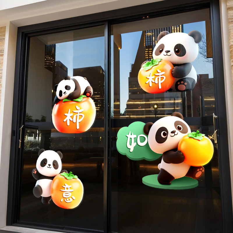 幼儿园儿童房衣柜门上补洞遮丑挡窟窿划痕柿柿如意熊猫可爱墙贴纸