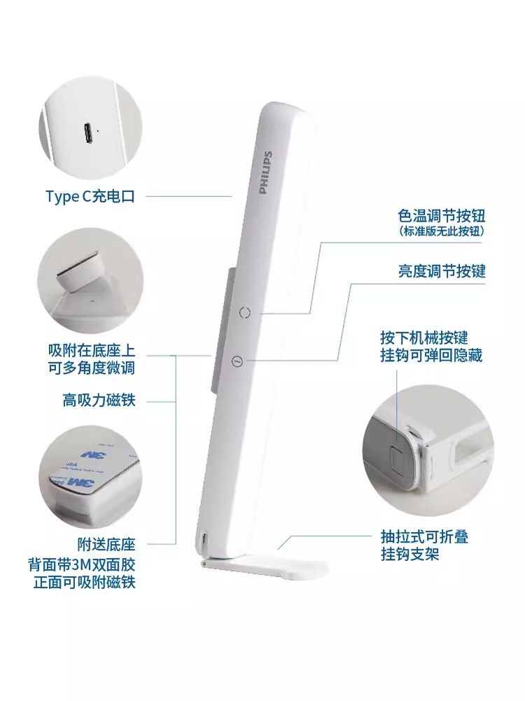 飞利浦大学宿舍护眼led台灯酷毙灯书桌学习专用学生写字磁铁吸附