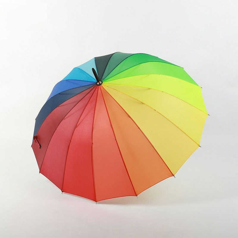 新品 厂家16K韩国创意彩虹伞 长柄直杆自动雨伞 广告伞定 制LOGO