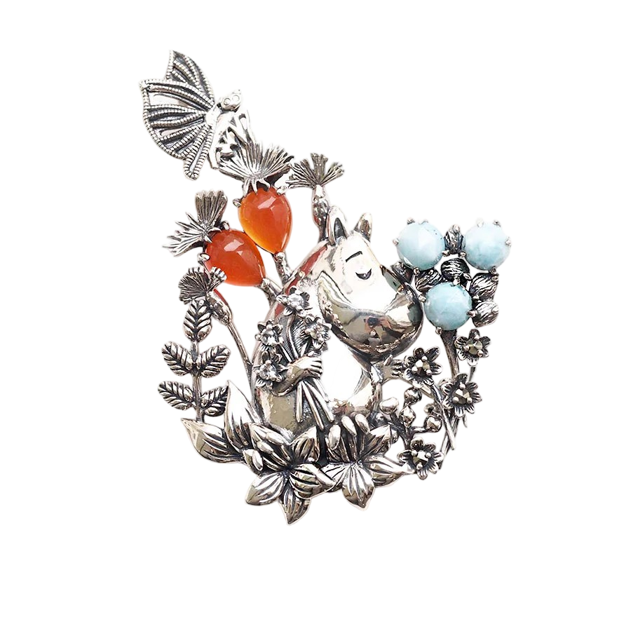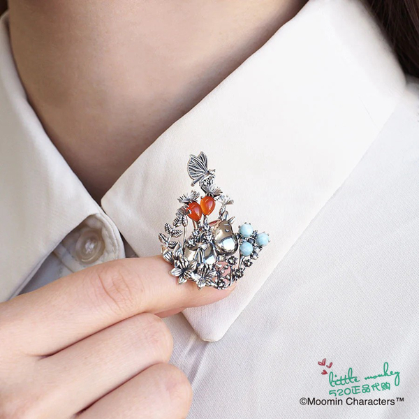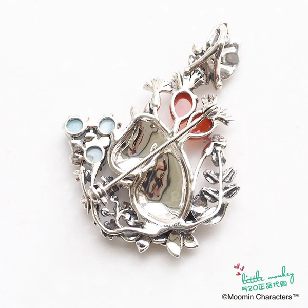日本代购 Moomin精灵姆明 悠闲摘花 银项坠项饰 衣服帽子别针胸针
