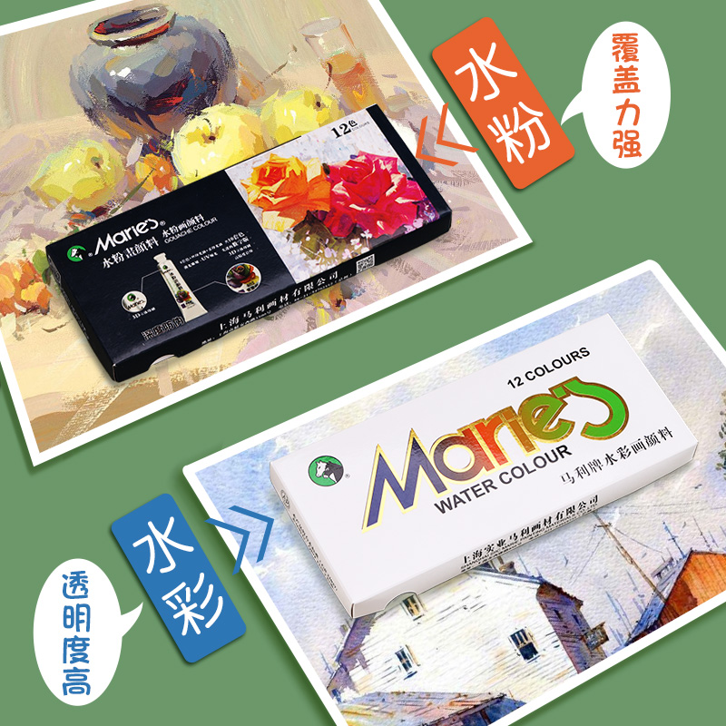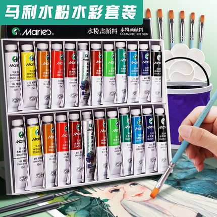 马利水粉水彩颜料美术生专用24色12ml初学者全套便携绘画工具套装