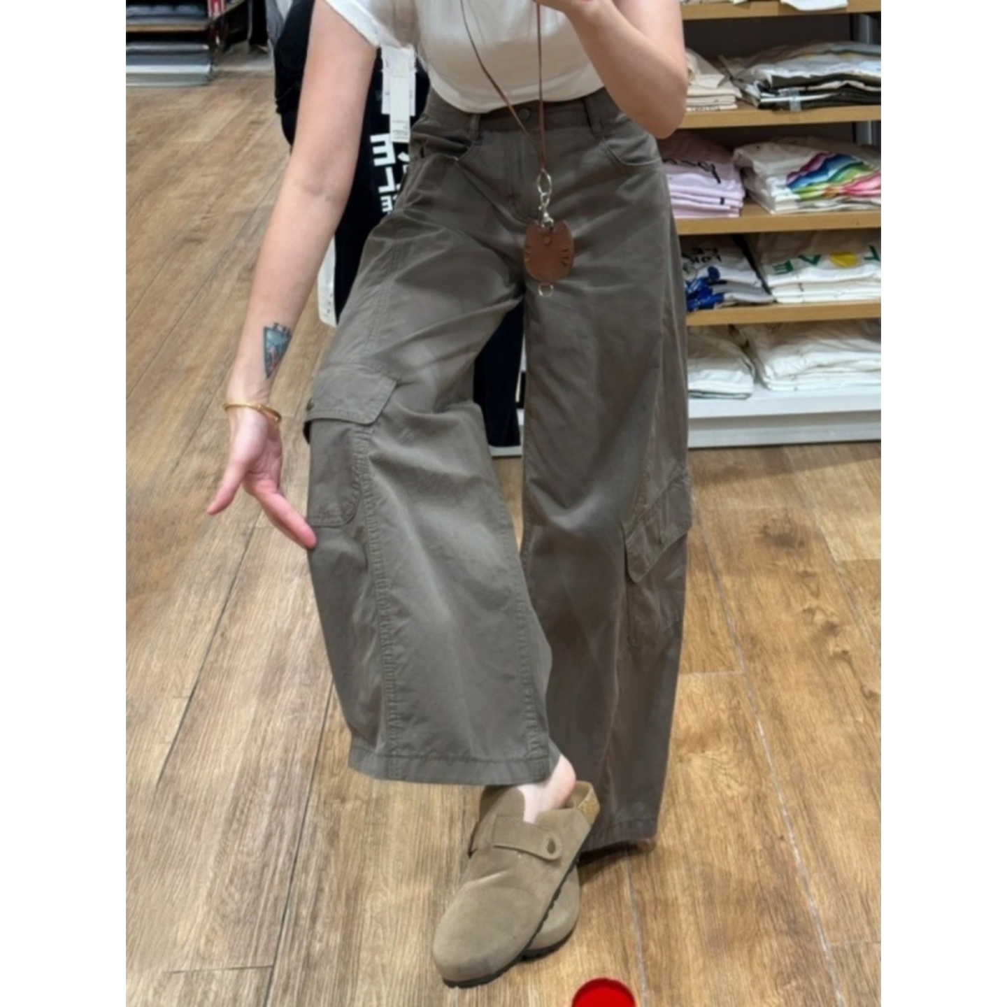 大码胖mm美式高街工装弯刀牛仔裤女秋冬加绒高腰直筒休闲阔腿长裤