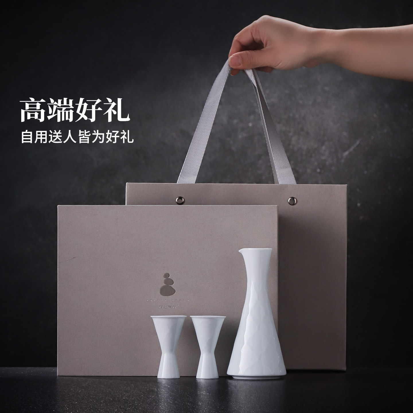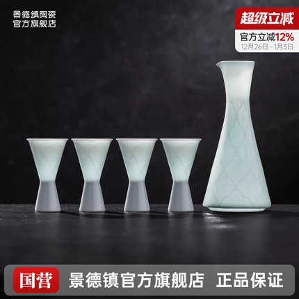 景德镇官方陶瓷雕刻白酒杯家用中式高档分酒器新款酒具高档送礼