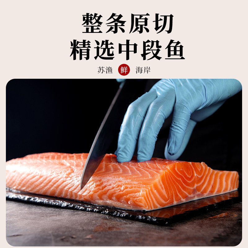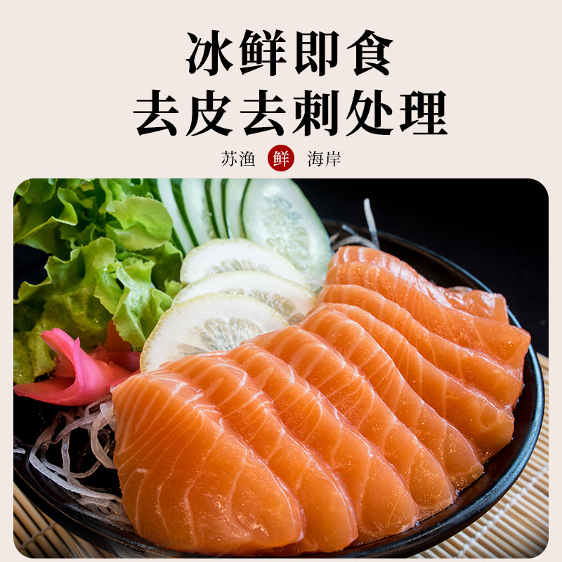 新鲜三文鱼刺身生鱼片海鲜新疆鱼腩中段冰盘寿司食材拼盘正宗400g