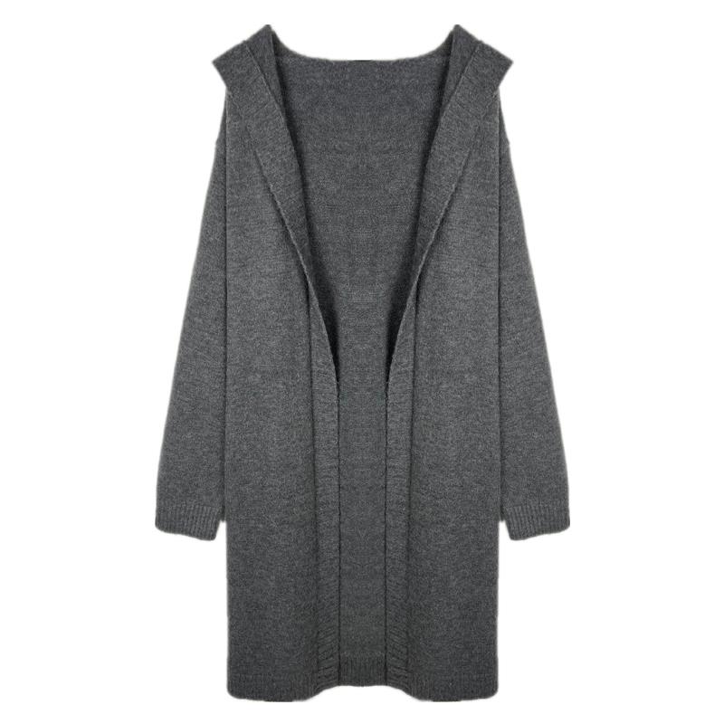 羽毛自制灰色中长款毛衣外套女春秋冬羊毛针织开衫早秋新款慵懒风