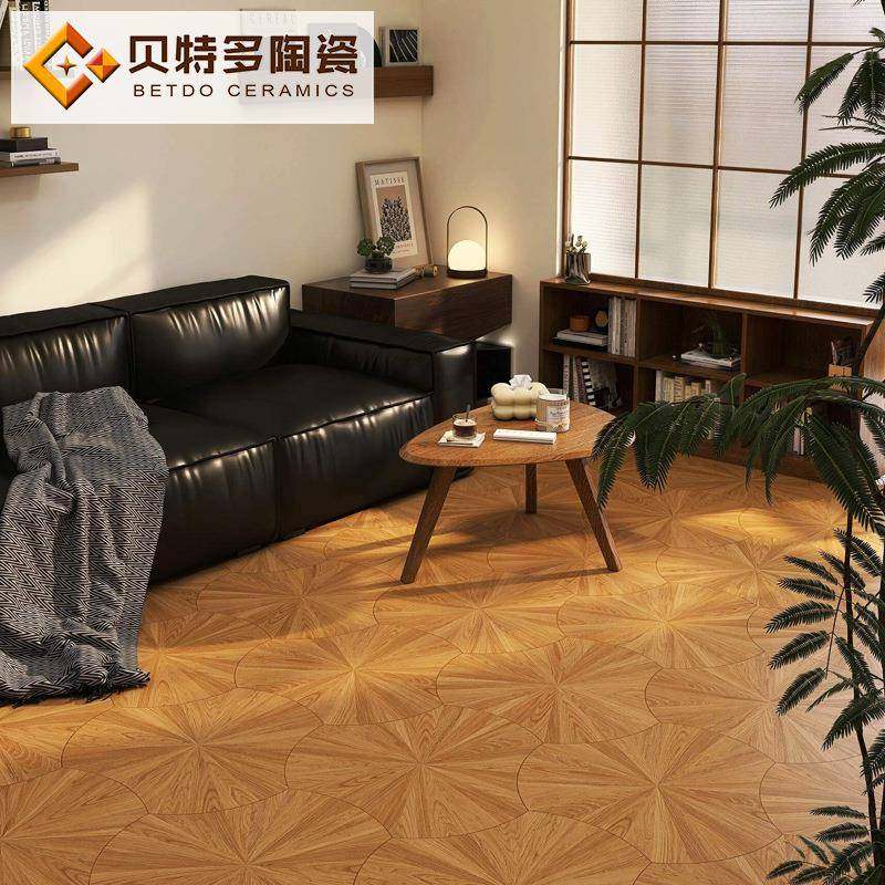 天鹅绒柔光荷叶木纹砖520x600复古瓷砖胡桃木焦糖色仿木纹地砖