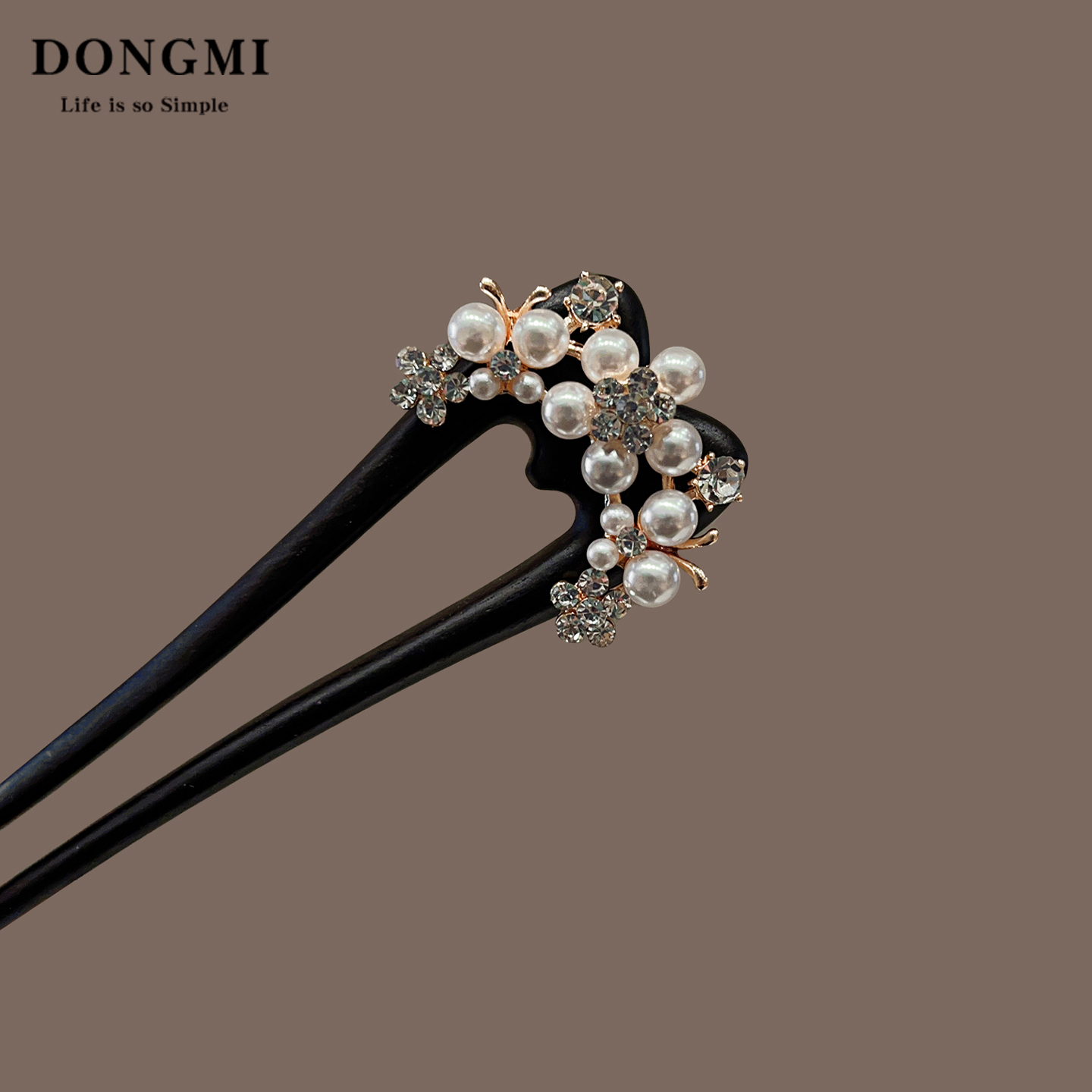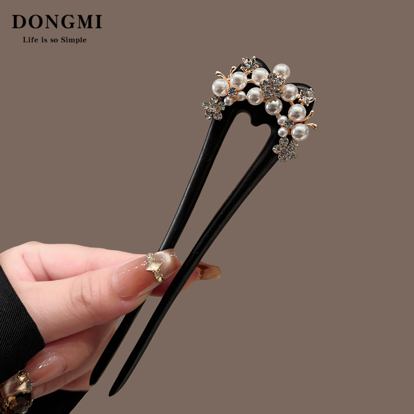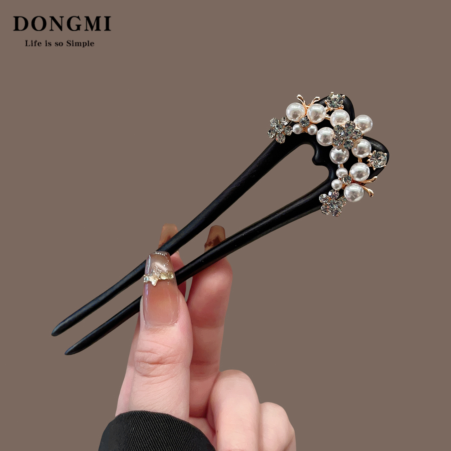 黑檀木u型双钗发簪女高端国风簪子中式新款盘发钗马面裙丸子头饰