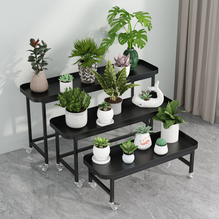 2023新款铁艺花架子轻奢室内阳台带轮客厅落地多层多肉托盘花盆
