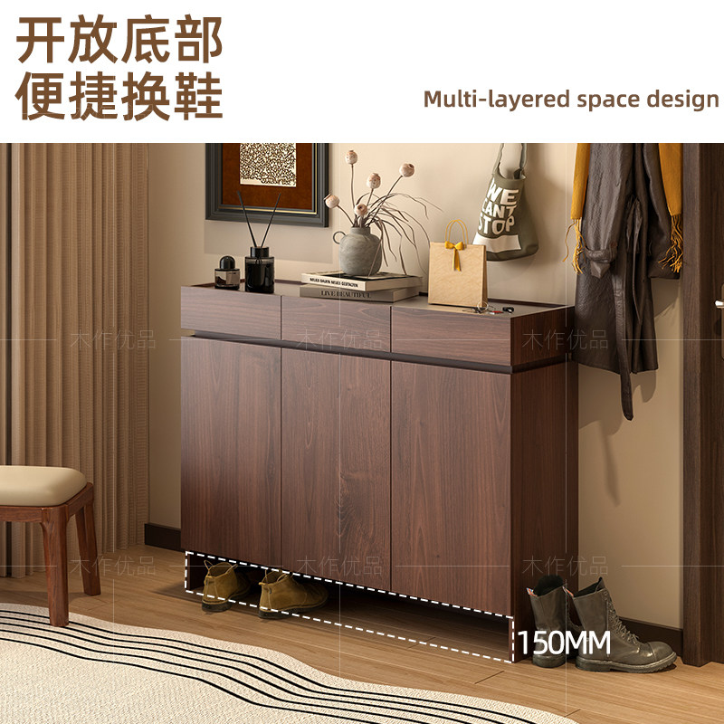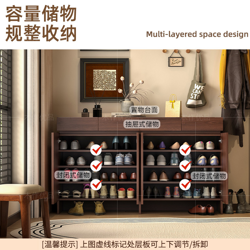 中古风实木鞋柜家用门口2025年新款爆款入户收纳柜一体靠墙玄关柜
