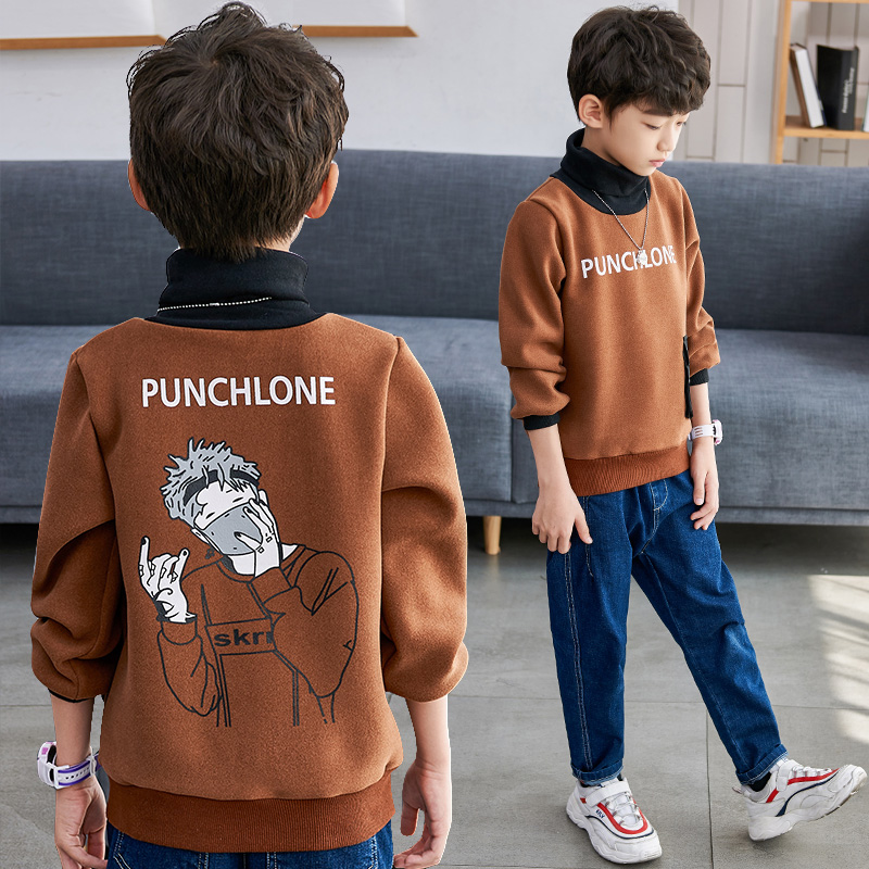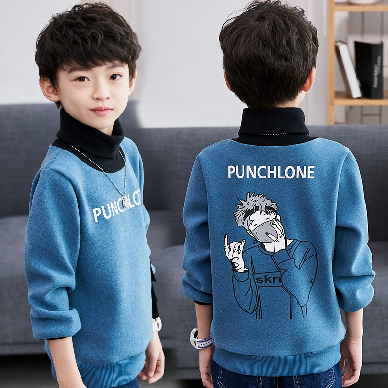 男童秋冬装加绒卫衣2025新款中大童冬季加厚洋气一体绒上衣打底衫