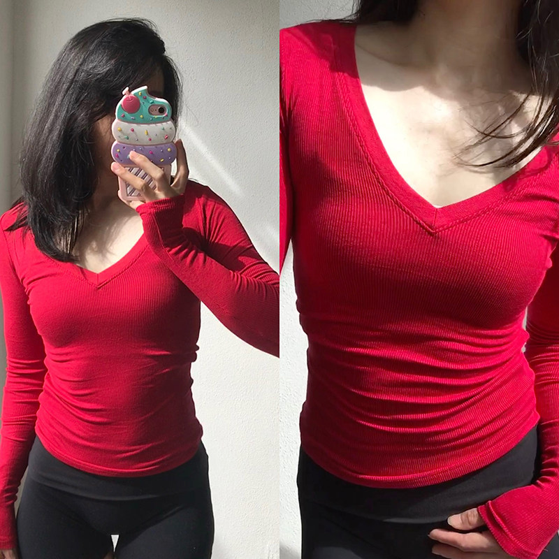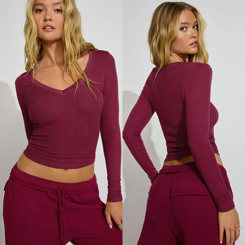 Morningoolala Serene Deep V-Neck Long Sleeve 螺纹V领弹力长袖