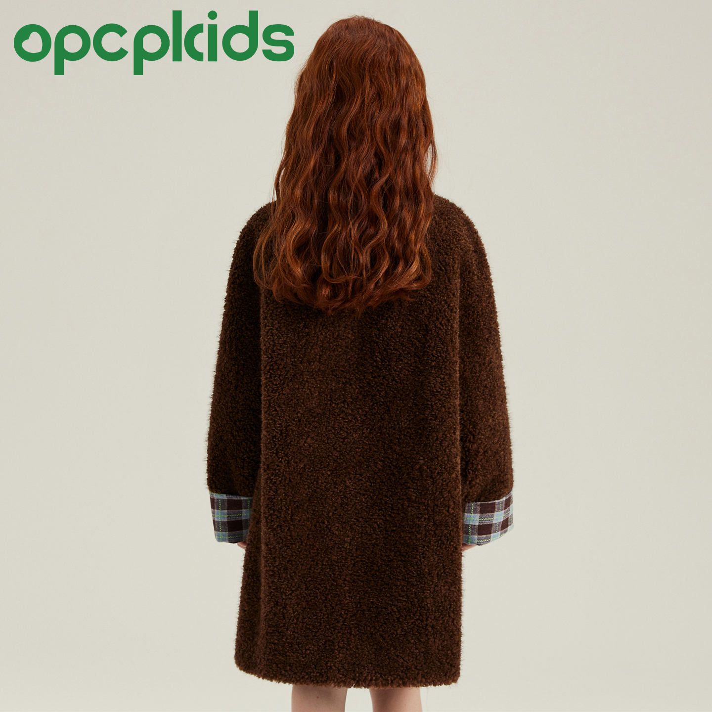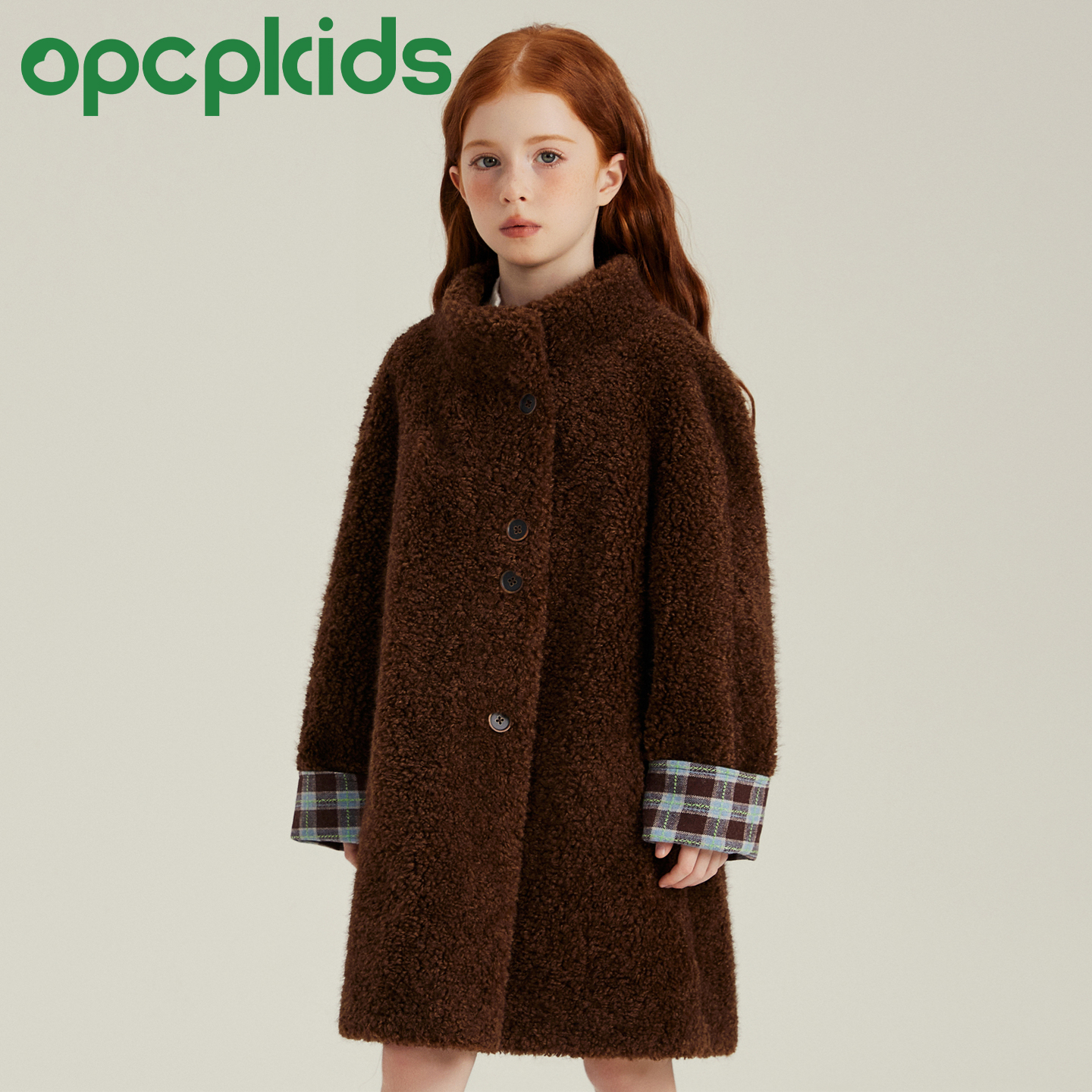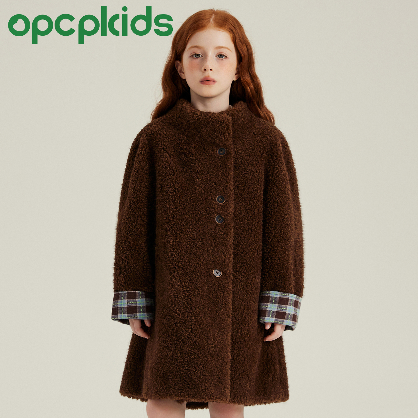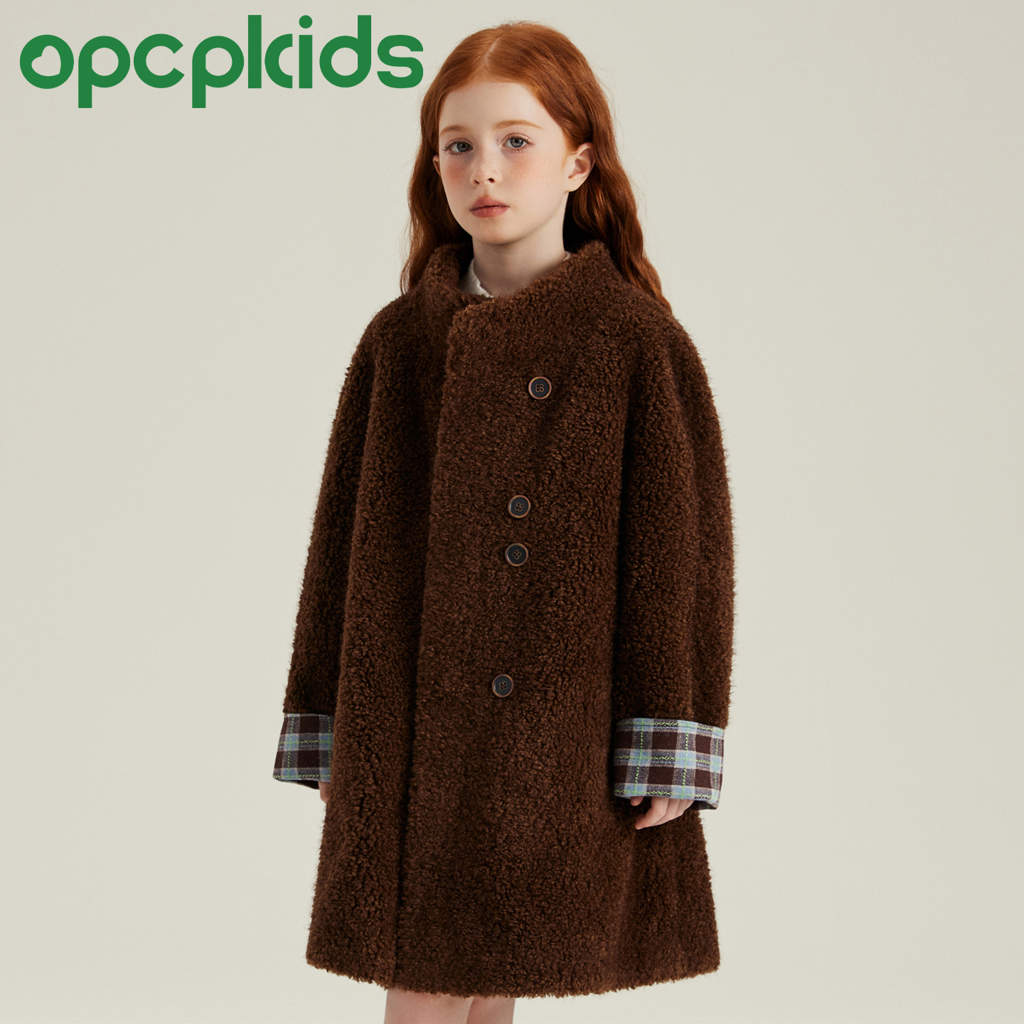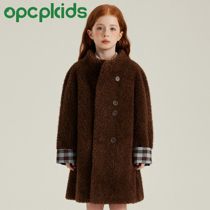 OPCP儿童皮草外套2025秋冬新款女童仿羊羔毛小女孩毛毛大衣中长款