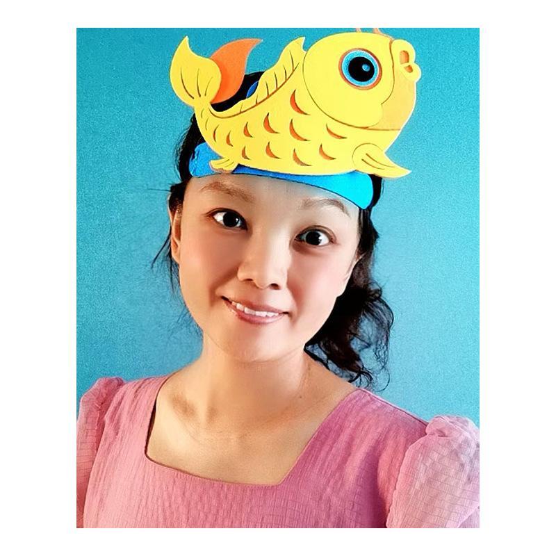 小鲤鱼跳龙门头饰道具燕子螃蟹卡通头套儿童表演出动物帽子头箍