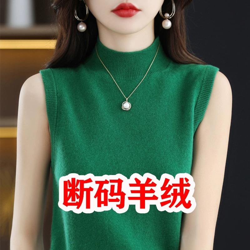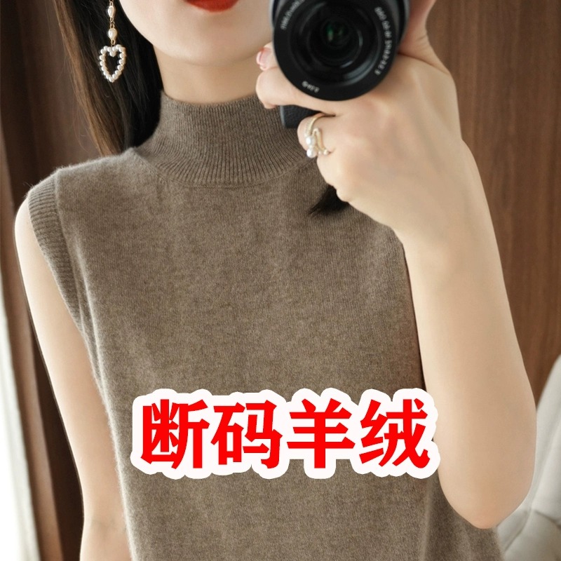 春秋新无袖女半高领吊带打底衫女纯色西装内搭羊毛针织衫套头背心